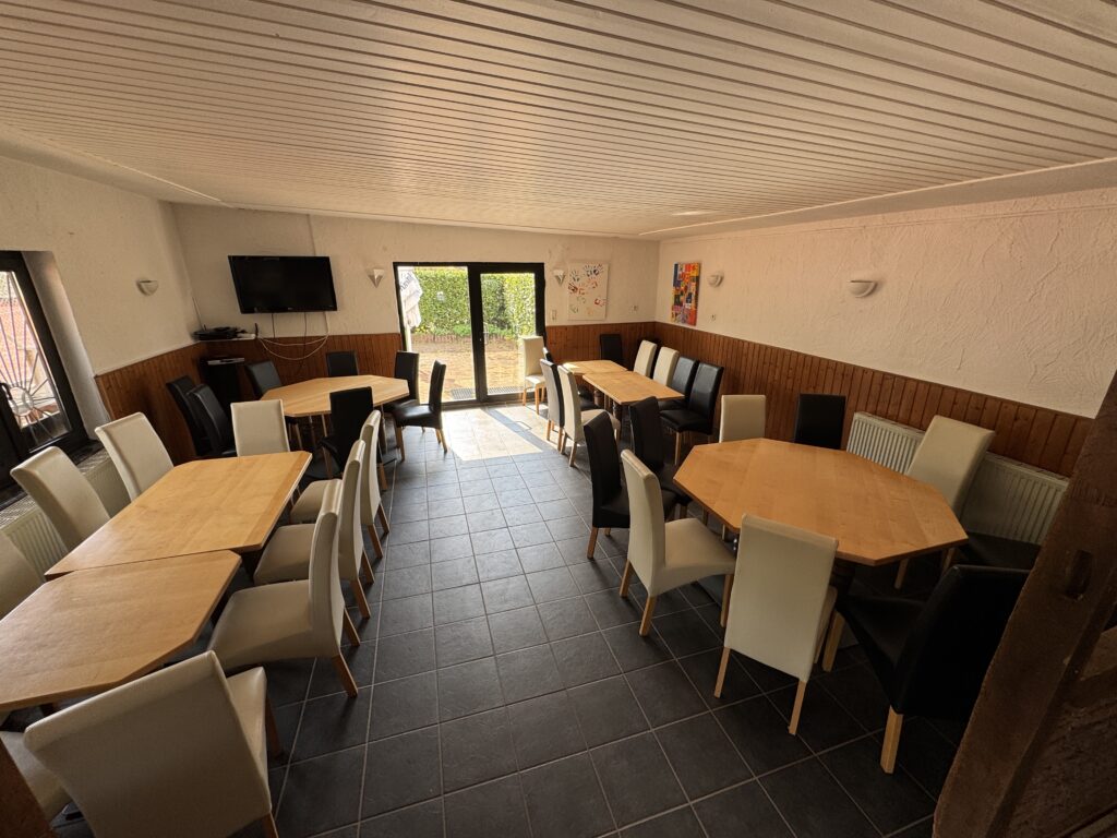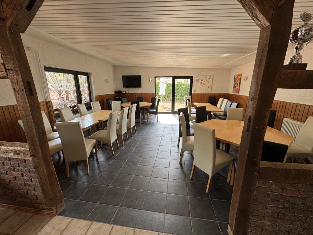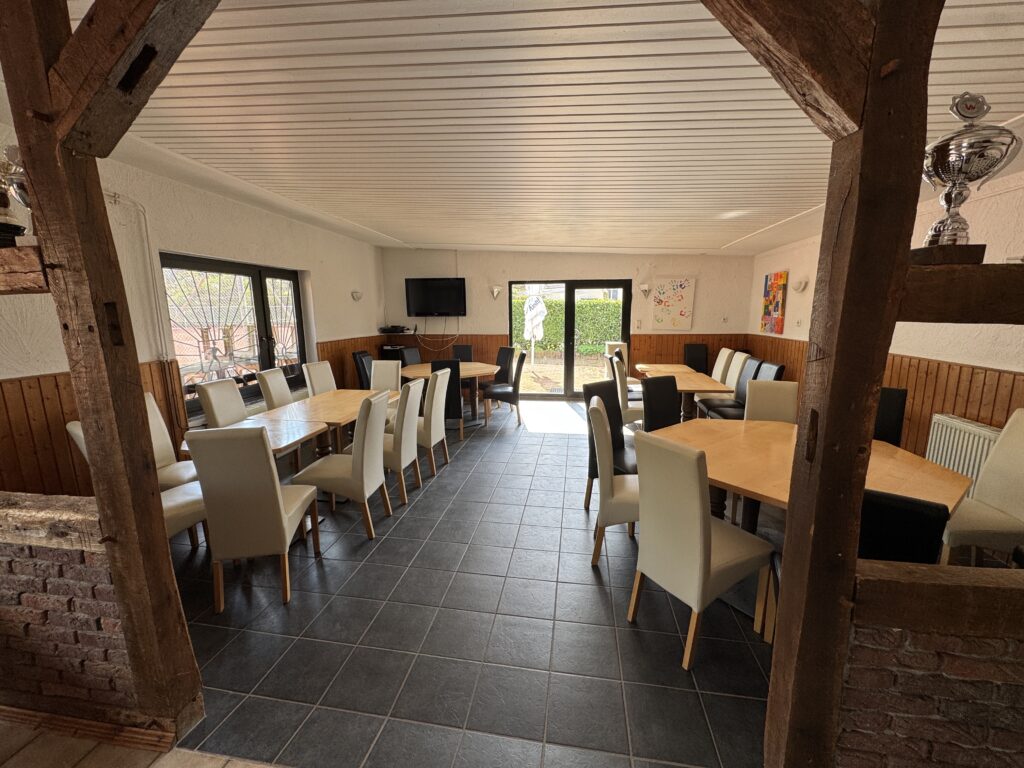 Der Raum verfügt über eine voll ausgestattete Küche, ausreichend Sitzgelegenheiten und eine schöne Terrasse mit Blick auf die Tennisanlage. Parkplätze sind direkt am Clubhaus vorhanden.