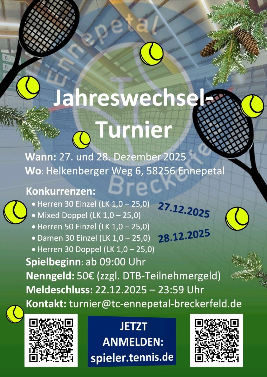 Nach dem Erfolg unseres ersten LK-Turniers gibt es für alle Tennisbegeisterten mehrere Highlights zum Jahreswechsel.